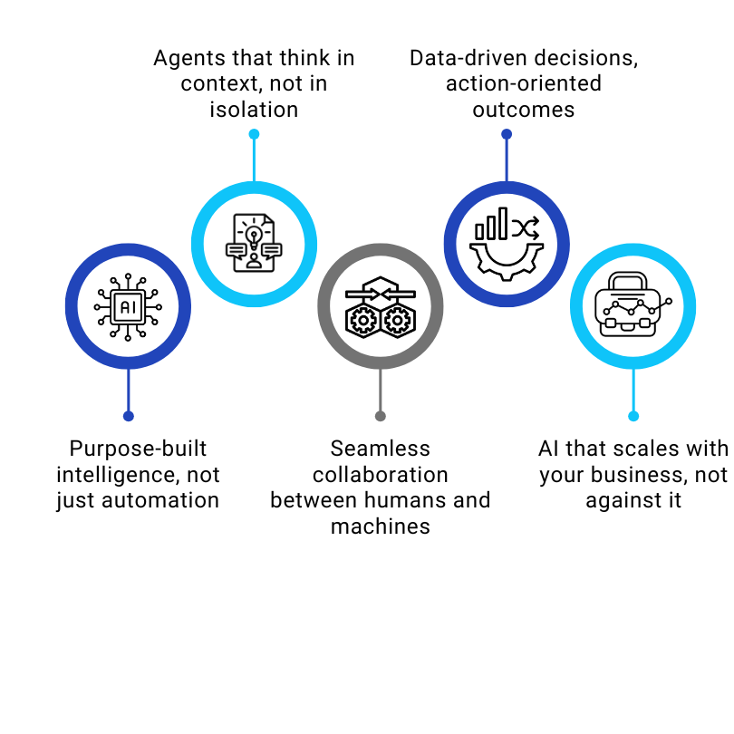 Our AI agents are crafted around your unique workflows, tools, and data ecosystem, designed to blend in seamlessly rather than disrupt.