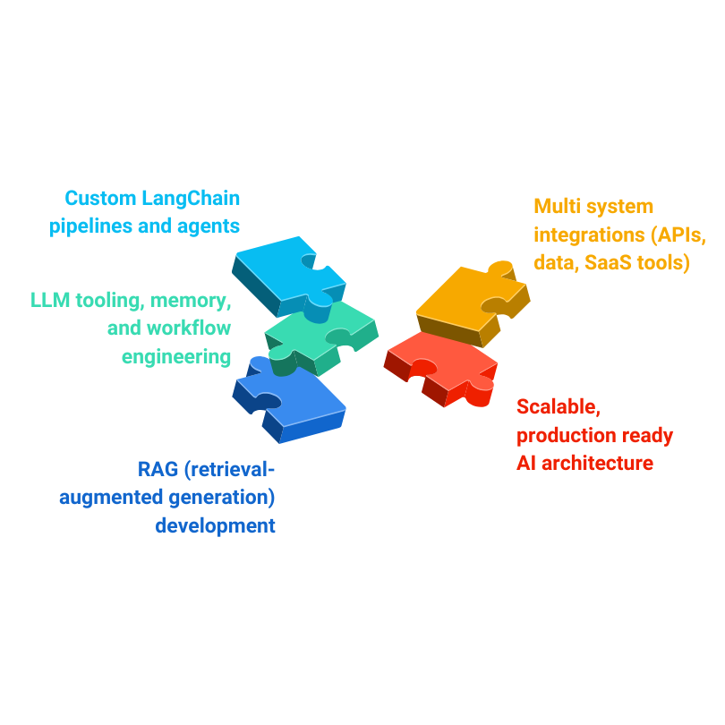 LangChain is built for real-world use. Skilled developers connect AI with: